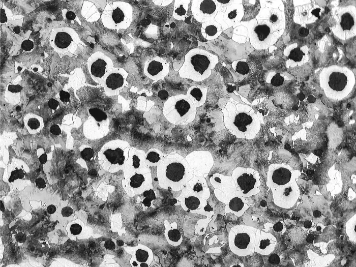 We evaluate nodularity and graphite distribution in ferrous castings, ensuring the casting process was controlled and the material meets ductility requirements.